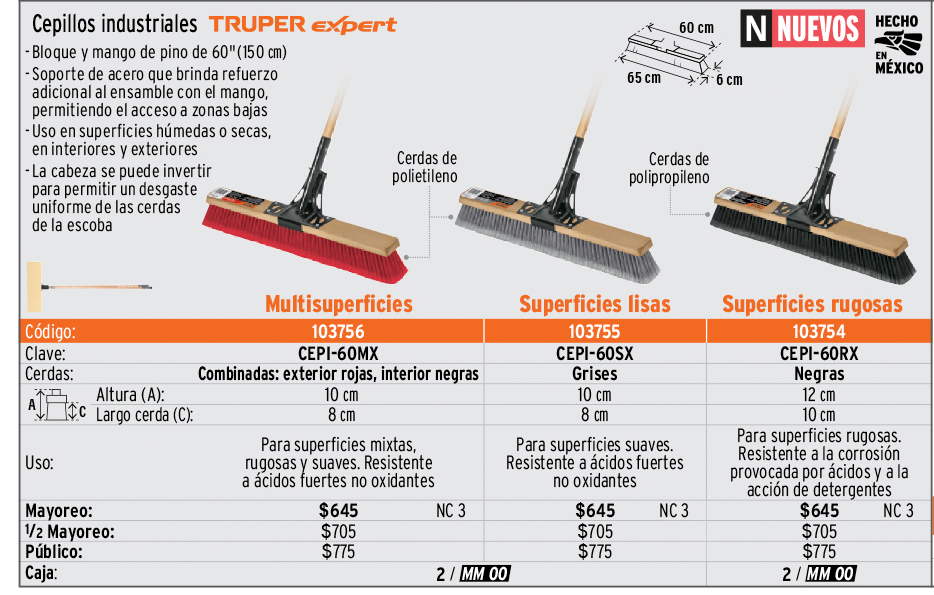 Todos nuestros productos cuentan con garantía. Las cantidades de empaques (cajas o atados) y máster, pueden cambiar y serán ajustadas en el sistema de captura de pedidos.
