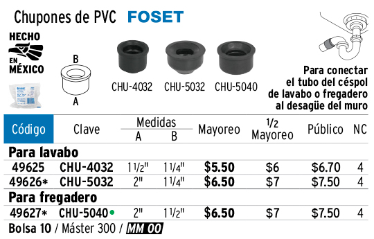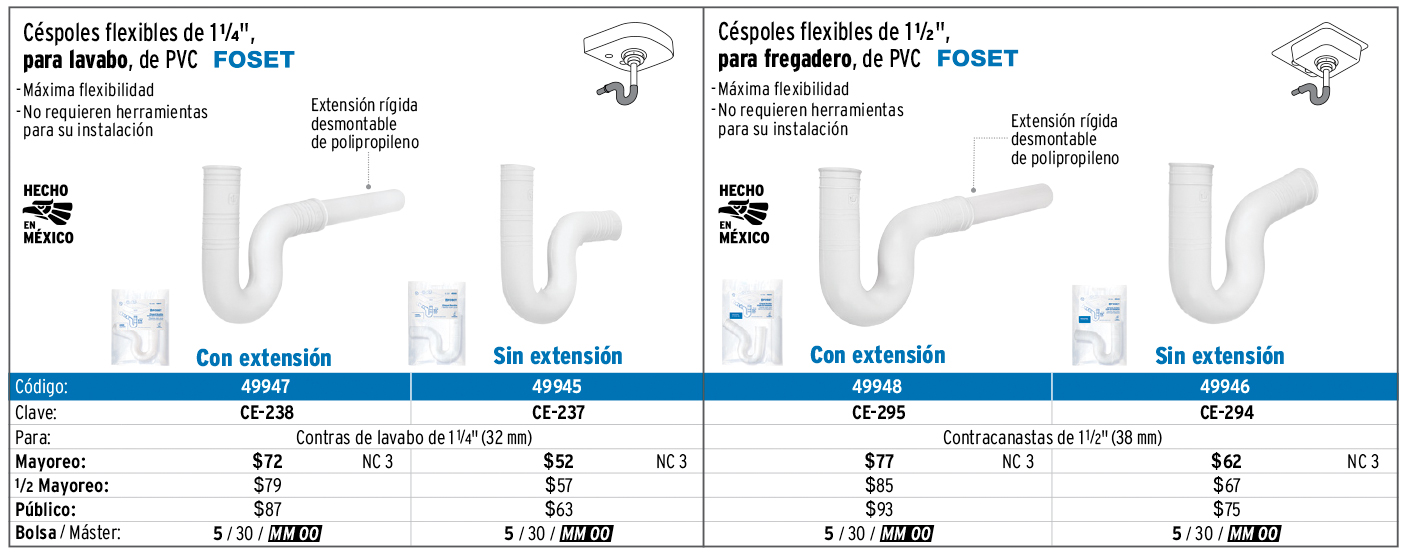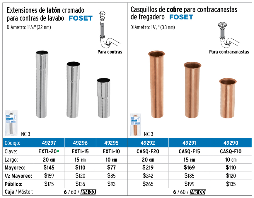 Extensiones, casquillos, cubretaladros, chupones, desagües y céspoles
