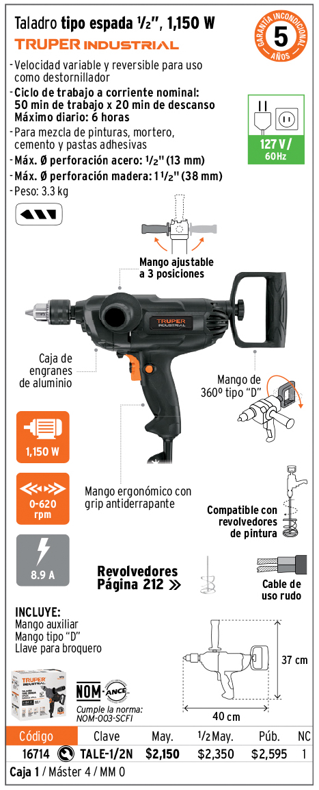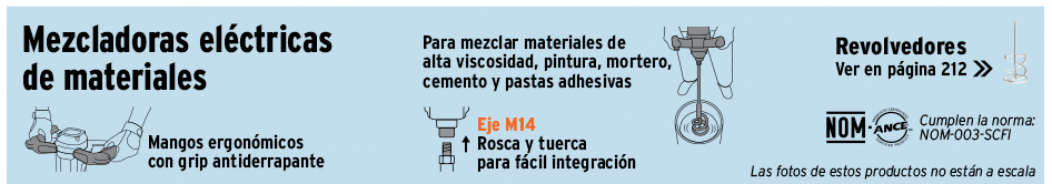 Mezcladoras eléctricas, taladro tipo espada, destornillador para panel de yeso y soporte para taladro