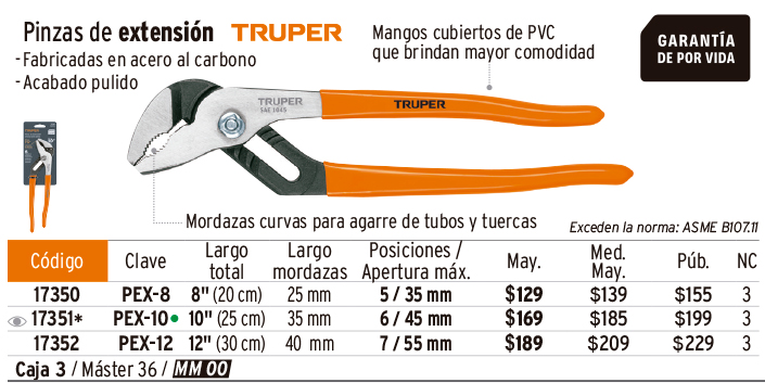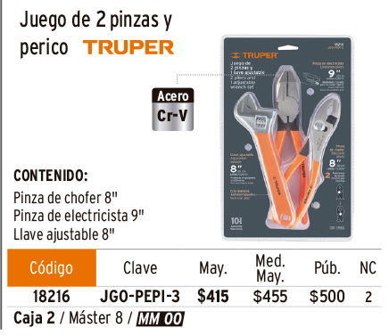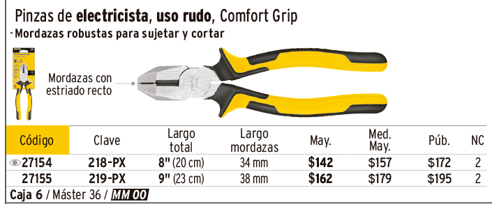 Pinzas, mango de PVC TRUPER y Comfort Grip PRETUL