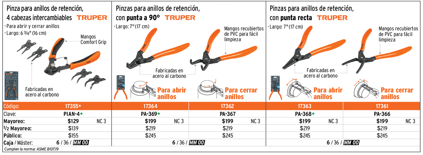 Pinzas ponchadoras, crimpadoras y pinzas para anillos de retención