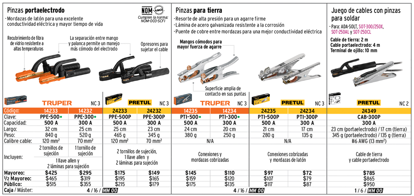 Pinzas portaelectrodo y para tierra, equipo de oxicorte y soldadura, accesorios