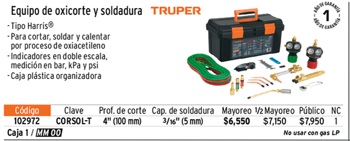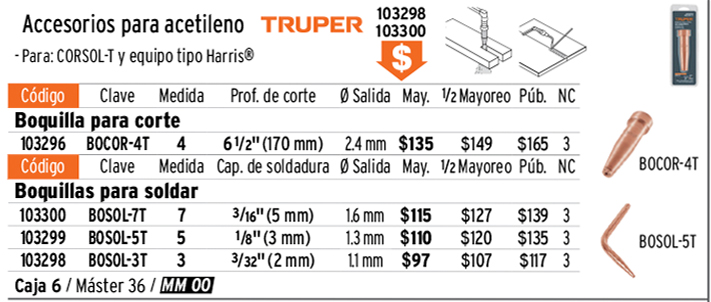 Los precios de este catálogo pueden sufrir cambios que serían publicados en PROMOTRUPER mensual. Los productos ilustrados pueden sufrir cambios sin previo aviso, como resultado de nuestros procesos de mejora continua. Harris® es una marca registrada propiedad de Lincoln Global, Inc.