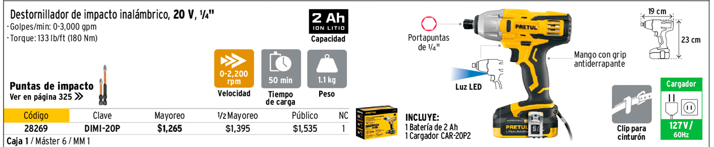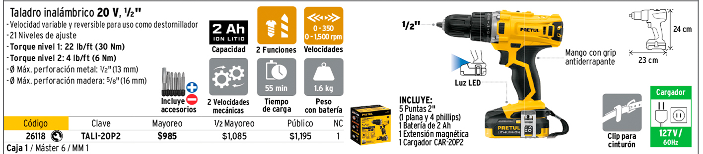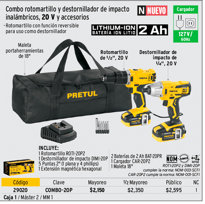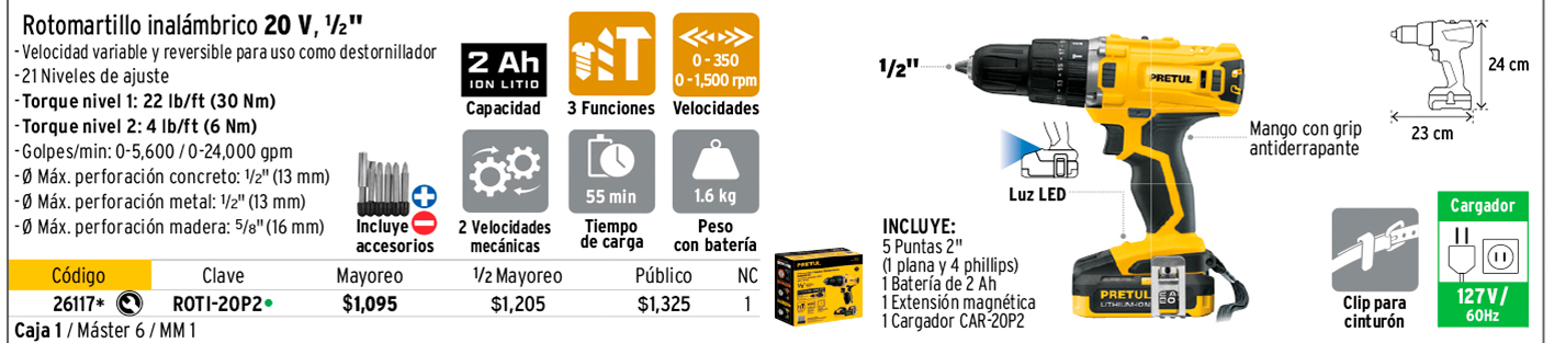 Rotomartillos, taladros, destornilladores y kits de 20 V, PRETUL