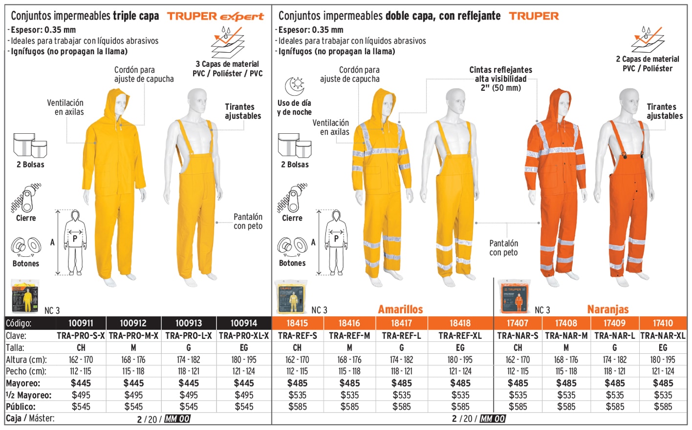 Conjunto impermeable doble capa naranja con reflejante, XG