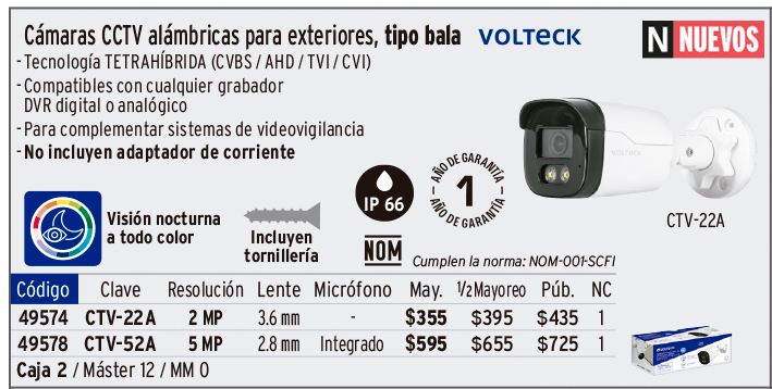 Cámara Tipo Bala 5MP, Lente 2.8mm, c/Micrófono, VOLTECK
