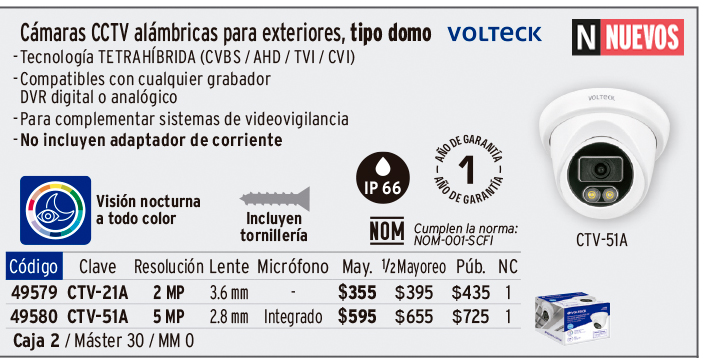 Cámara Tipo Domo 5MP, Lente 2.8mm, c/Micrófono, VOLTECK