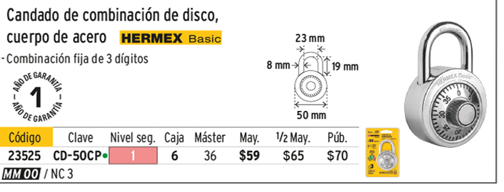 Candado de combinación de disco en blíster, HERMEX BASIC
