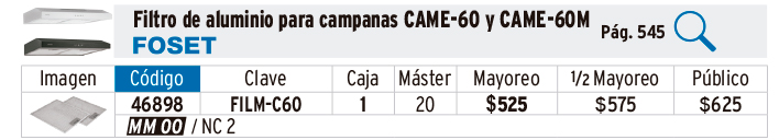 Campana extractora 60cm, empotrable, acero inoxidable, FOSET