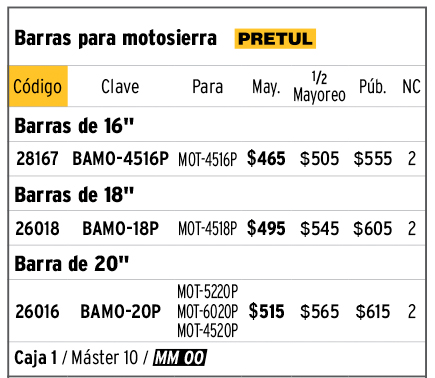 Barra de repuesto 14" p/motosierra a gasolina 33/38cc