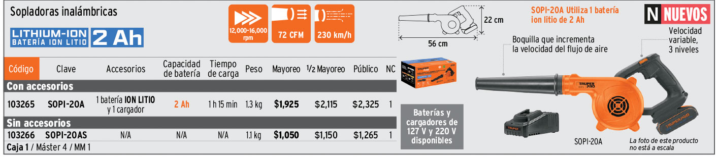 Sopladora para taller, 20V, sin accesorios, TRUPER PRO