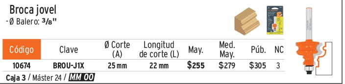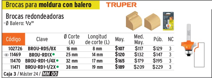 Broca para router, redondeado, 5/8" con balero, TRUPER