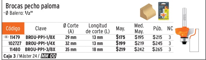Broca para router, pecho paloma, 1-1/4" con balero, TRUPER