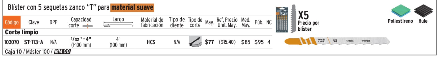 Blíster 5 seguetas T, cuchilla HCS, para material suave