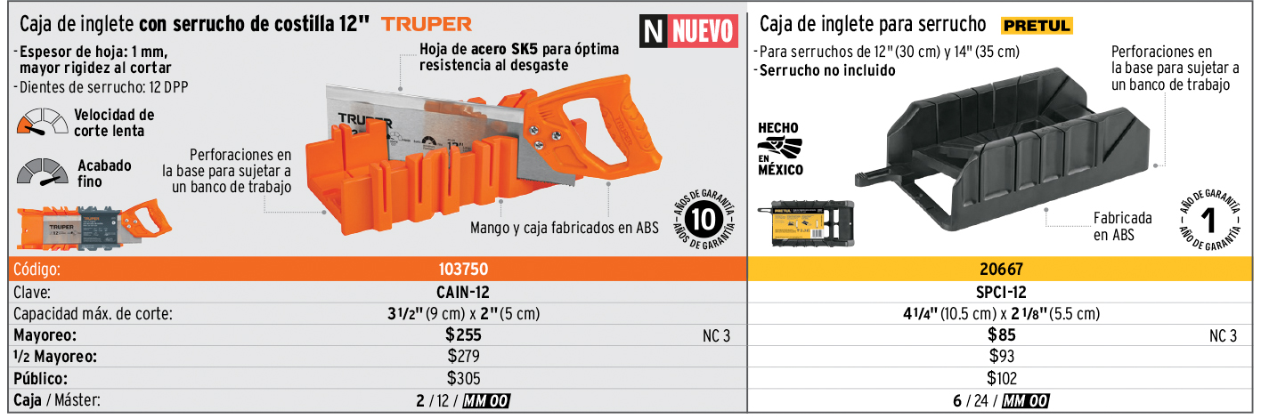 Caja de inglete con serrucho de costilla 12", TRUPER