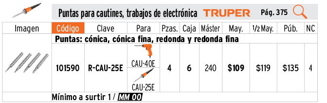 Juego de 4 puntas para cautín CAU-25E, TRUPER