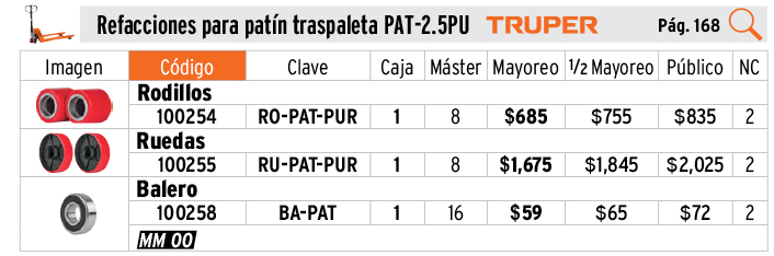 2 Rodillos para patín traspaleta de 2.5 ton PAT-2.5PU