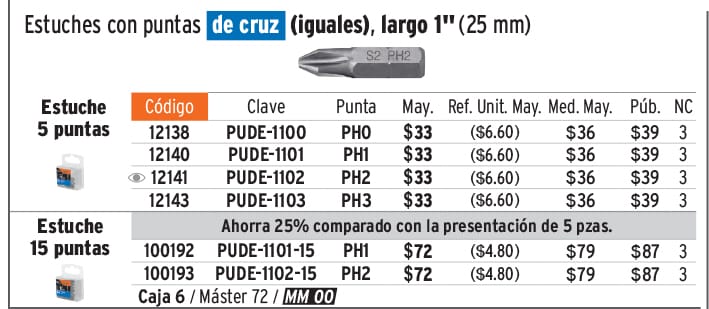 Estuche con 15 puntas de cruz PH1 largo 1", TRUPER EXPERT