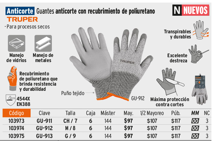 Guante Anticorte NV5 recubrimiento de poliuretano, M, TRUPER