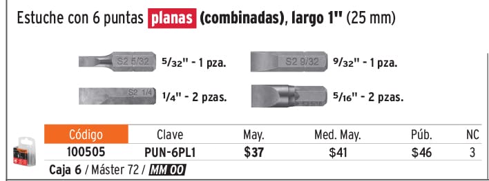 Estuche con 6 puntas planas combinadas largo 1", EXPERT