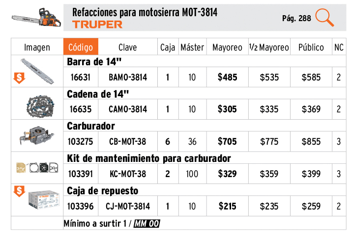Carburador p/motosierra a gasolina MOT-3814/3816/3818,TRUPER