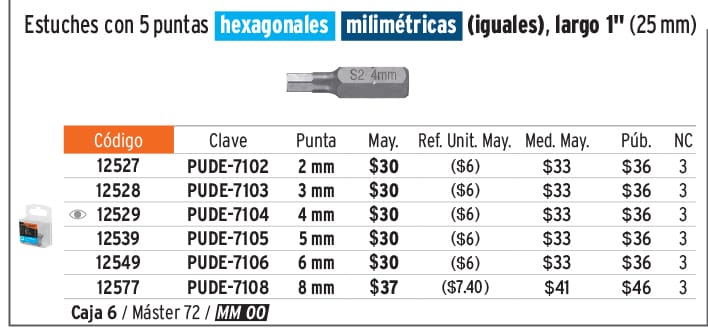 Estuche con 5 puntas hexagonales de 4 mm largo 1", EXPERT