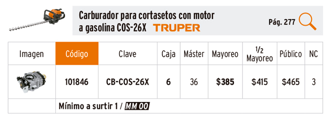 Carburador para cortasetos a gasolina COS-26X, TRUPER