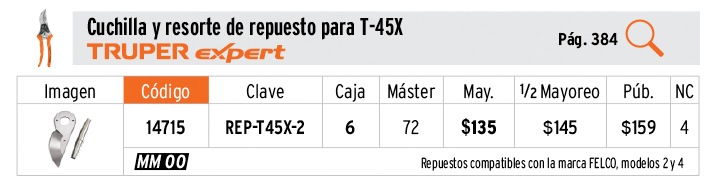Cuchilla y resorte de repuesto para T-45X, TRUPER EXPERT