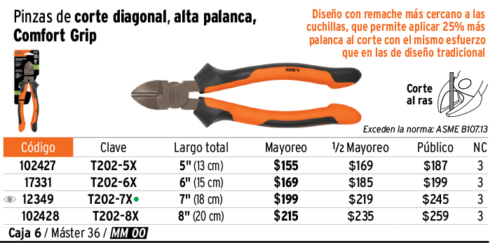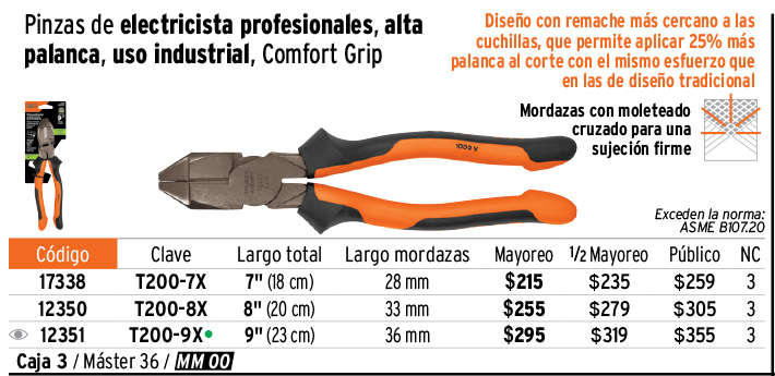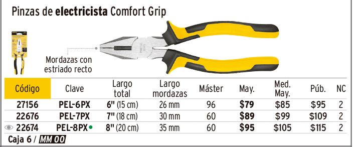 Pinza electricista 7" uso rudo, alta palanca, Comfort Grip
