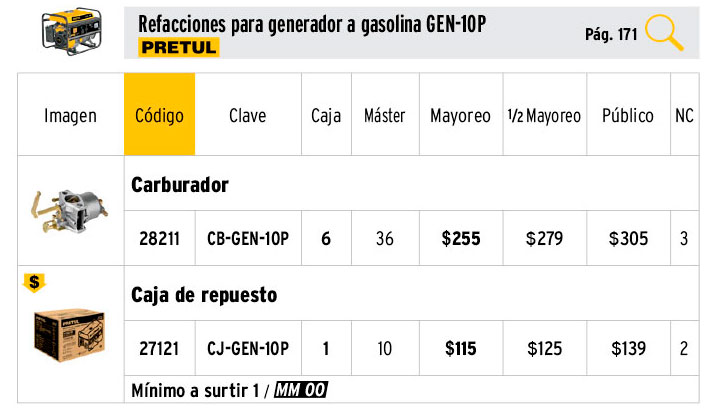 Caja de empaque de repuesto GEN-10P, PRETUL