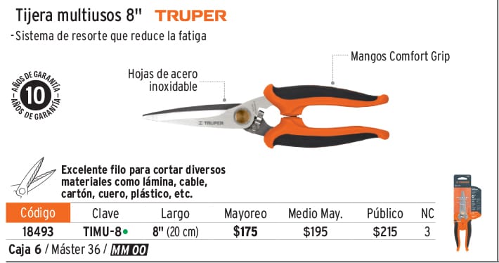 Tijera 8" multiusos, Comfort Grip, acero inoxidable, TRUPER