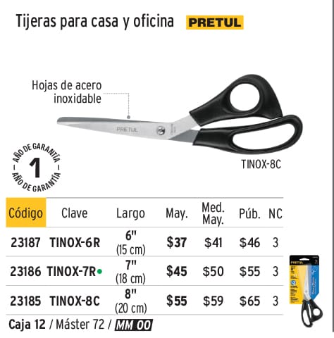 Tijera 8" para casa y oficina, de acero inoxidable, PRETUL