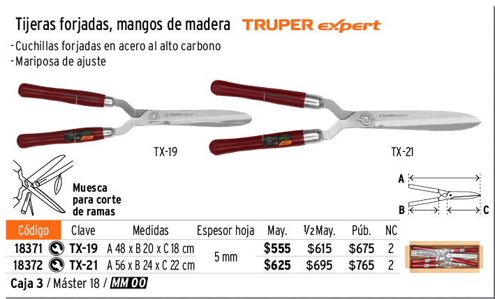Tijera para poda 56 cm,forjada,mgos de madera, TRUPER EXPERT