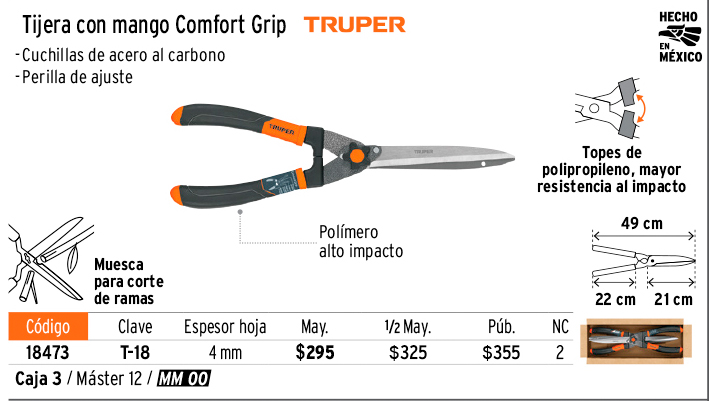 Tijera para poda 49 cm, mangos Comfort Grip, TRUPER