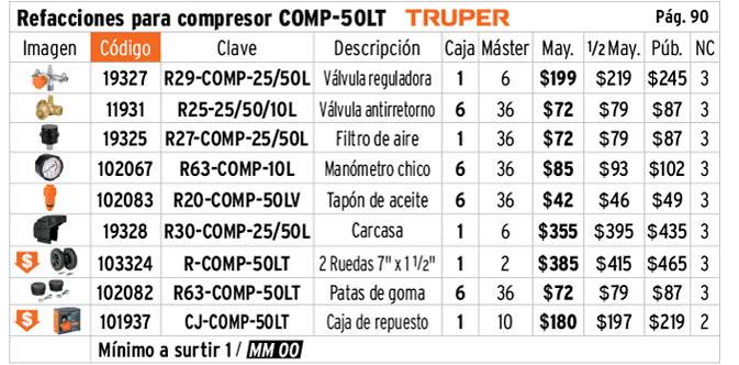 Caja de empaque de repuesto para COMP-50LT, TRUPER