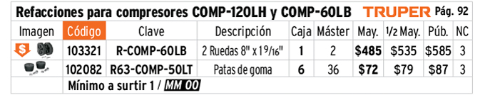 2 ruedas de repuesto para COMP-60LB y COMP-120LH, TRUPER