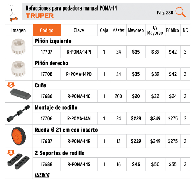 Rueda con inserto de repuesto para podadora POMA-14, TRUPER