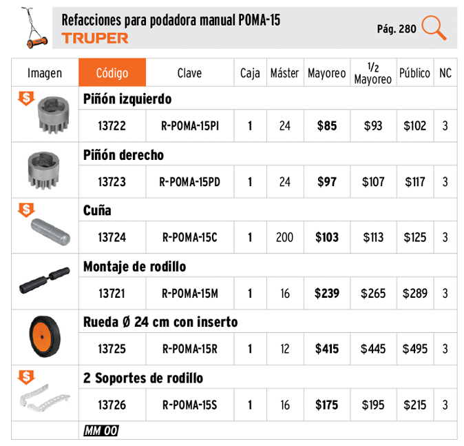 Piñón izquierdo de repuesto para podadora POMA-15, TRUPER