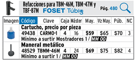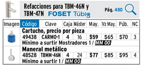 Maneral repuesto para TBM-46/47 y TBF-87, satín, FOSET TÚBIG