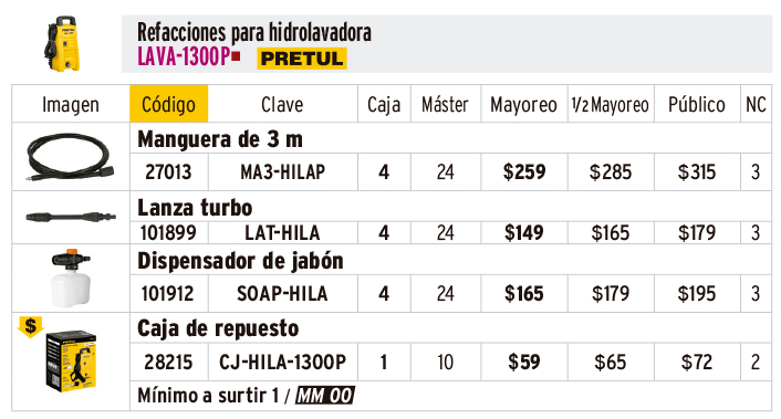 Caja de empaque de repuesto para HILA-1300P, PRETUL
