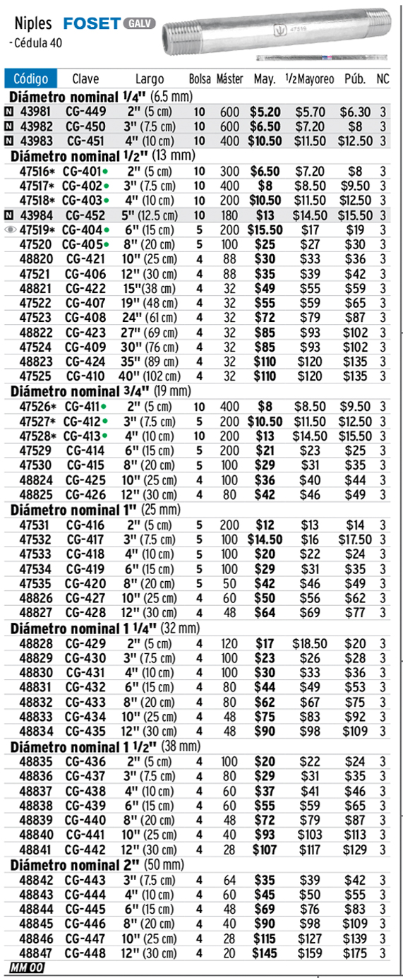 Niple de acero galvanizado 1/2" x 30", FOSET