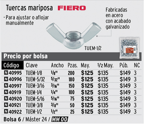 Bolsa con 30 arandelas de presión de 1", FIERO