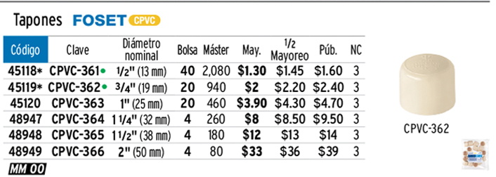 Tapón de CPVC 1-1/2", FOSET