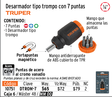 Desarmador tipo trompo con 7 puntas, TRUPER