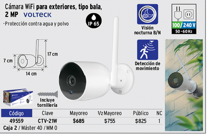 Cámara WiFi Tipo Bala 2MP, VOLTECK