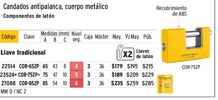 Candado antipalanca 65 mm cuerpo metálico, HERMEX BASIC