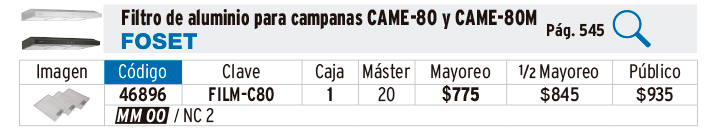 Juego de 3 filtros de aluminio para campana CAME-80