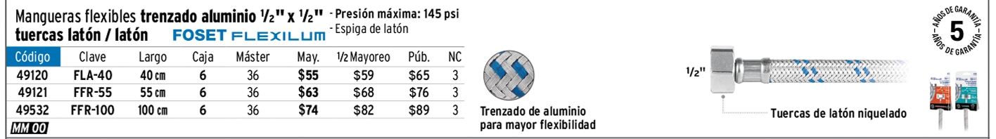 Manguera para gas, aluminio, 5/16" flare, 100cm, FOSET BASIC