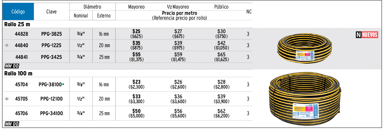 Metro de manguera para gas, 1/2" PE-AL-PE en rollo de 100m