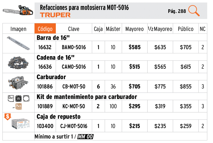Caja de empaque de repuesto para MOT-5016, TRUPER